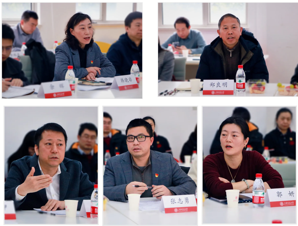 调研后,双方在文选楼311会议室开展了深入的学习交流。在学习环节,区科委杜涛同志和学院周申申同志分别领学了全国科技工作会议精神、全国教育大会精神和上海市教育大会精神,与会人员认真学习并积极探讨畅通教育科技人才良性循环的体制机制,共同为发展新质生产力积蓄动能。