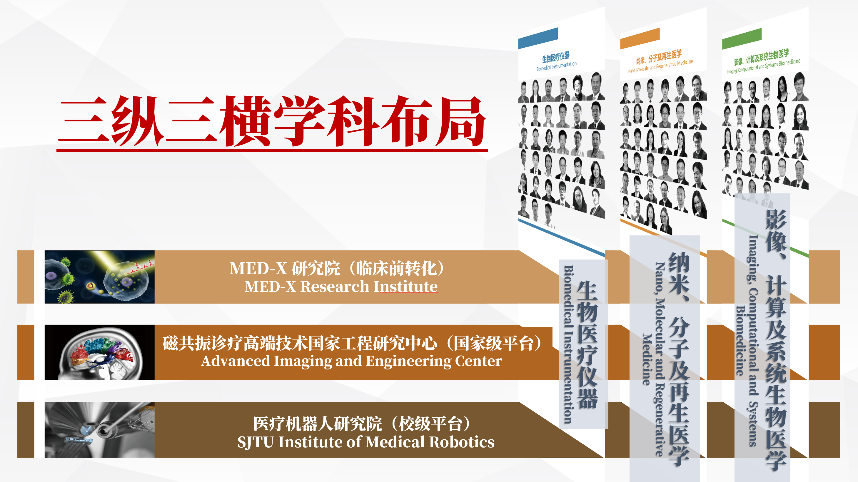 学院以建设国际一流学科为目标,系统整合了生物医疗仪器、纳米分子及再生医学、影像计算及系统生物医学三大方向,形成“三纵三横”协同创新格局,持续强化前沿交叉与高峰建设。当前,学院正面向脑疾病、肿瘤、心血管等重大疾病的智能精准诊疗需求,布局脑疾病诊疗一体化、肿瘤诊疗创新装备、心血管精准诊疗等前沿领域,聚力开展多学科协同攻关,力争实现原创性突破,在国家健康产业发展中发挥引领作用。